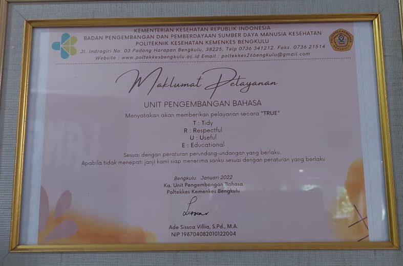 The Language Development Unit at Poltekkes Kemenkes Bengkulu is dedicated to helping students, staff, and the wider community improve their language skills. We provide high-quality language courses, including General English and TOEFL preparation, taught by experienced and qualified instructors. Our mission is to create a supportive learning environment with modern facilities and effective teaching methods, enabling learners to communicate confidently and achieve their academic or professional goals.